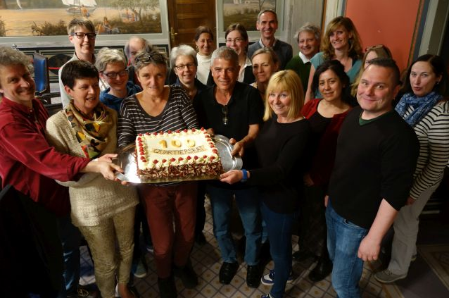 Der Quartiersrat, dessen Jury alle 2 Jahre neu gebildet wird, ist die Interessenvertretung der Kiezbewohnerschaft. Derzeit läuft im Schöneberger Norden bereits die 5. Wahlperiode. Vier der aktuellen Quartiersräte sind von Anfang an dabei. Zu den Gratulantinnen zählten die zuständige Stadträtin Frau Klotz und Frau Kast, die neue Gebietskoordinatorin der Senatsverwaltung für Stadtentwicklung und Umwelt.