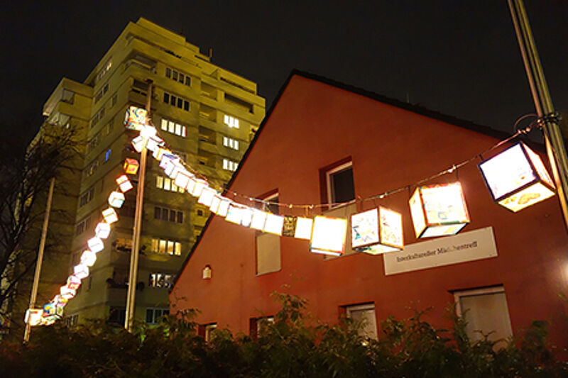 Kiezbewohnerinnen und -bewohner wurden seit 2017 zu verschiedenen Workshops eingeladen, um Laternen nach ihren eigenen Vorstellungen für den Kiez zu gestalten. Die Lichter sollen ein Zeichen für ein friedliches Miteinander in der Nachbarschaft setzen.