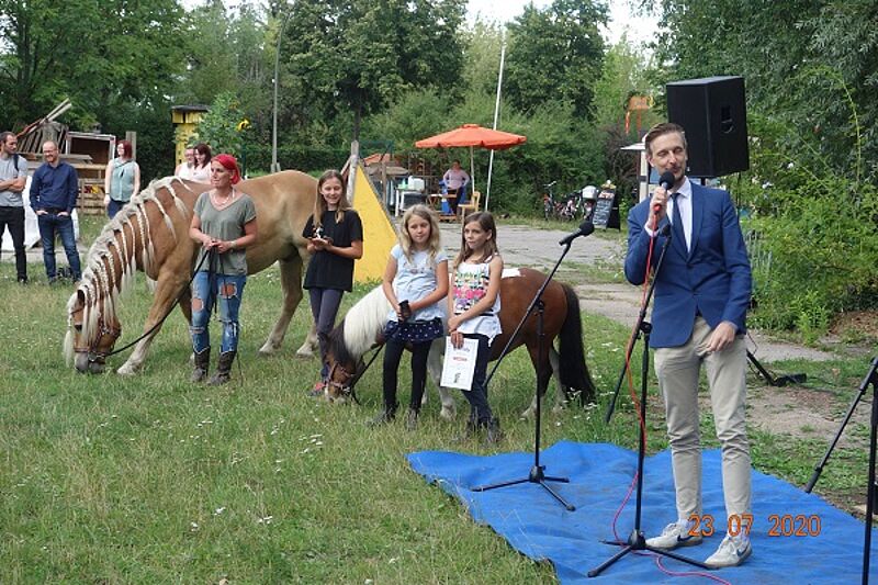Lange erwartet – wegen der Corona-Pandemie verschoben – hat Bezirksbürgermeisterin Dagmar Pohle die Villa Akari auf dem Abenteuerspielplatz Marzahn-West am 23. Juli 2020 feierlich eröffnet. Sozialstadträtin Juliane Witt und Jugendstadtrat Gordon Lemm waren ebenfalls gekommen, um die neue Spieloase einzuweihen. An der Ahrensfelder Chaussee 26 gibt es jetzt nicht mehr nur einen Kräutergarten und Tiere, sondern mit der neue errichteten Mehrzweckhalle auch die Gelegenheit für diverse Indoor-Aktivitäten.