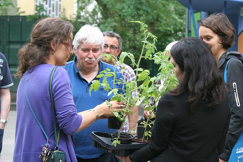 Zum Abschluss des Rundgangs erhielten die QR-Mitglieder als Dank für Ihr Engagement jeweils eine von der Ernst-Reuter-Schule gespendete Tomatenpflanze einer seltenen Sorte.