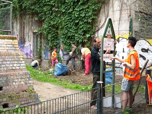 Ein deutlicher Vorher-Nachher-Effekt war die Belohnung für vier Stunden intensive Aufräumarbeit. Ein schönes, aber leider ungewohntes Bild bot sich: Der Spielplatz war ordentlich und sauber. Auch wurden Pflanzkästen gebaut und an den frisch gestrichenen Brandwänden aufgestellt. Die Elterninitiative der angrenzenden Europa-Kita VAK e.V. hatte unter dem Titel „Wir wollen nicht, dass unsere Kinder im Müll spielen!“ zur Säuberung aufgerufen. Finanziert wurde die Aktion aus Mitteln des Aktionsfonds der Sozialen Stadt vom Quartiersmanagement Mariannenplatz.