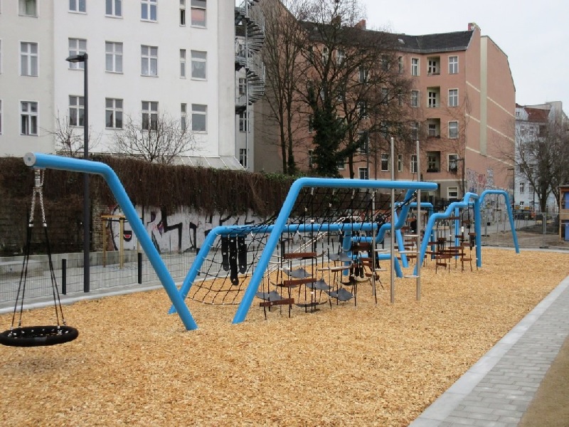 Ganz ohne Feier, Ansprachen und Tamtam, aber im Beisein des Baustadtrats Jochen Biedermann wurde am 10. Februar 2022 gegen 9 Uhr der Bauzaun weggeräumt. Nach eineinhalb Jahren Bauzeit gibt es wieder einen Spielplatz an der Reuterstraße 10 und auch der Durchgang zur Karl-Marx-Straße ist wieder offen.