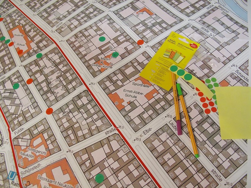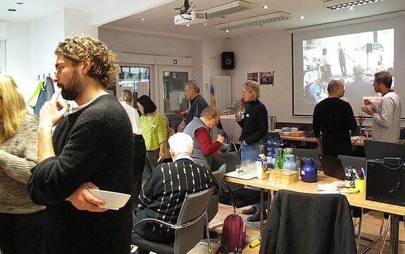 Neben dem kulturellen Programm bot der Abend auch Raum für inhaltliche Diskussionen über die Zukunft des Donaukiezes. In entspannter Atmosphäre tauschten sich Anwohnende an Thementischen aus. Ein Tisch widmete sich möglichen Inhalten für kommende Quartiersratssitzungen, darunter Themen wie Verkehrssicherheit, Altersarmut oder Müllprobleme. Ein weiterer Tisch sammelte Vorschläge für den jährlichen Ausflug des Quartiersrats – von einer Schifffahrt bis hin zu einer historischen Stadttour war alles dabei. Am dritten Tisch markierten Teilnehmende auf einer Karte positive und negative Orte im Donaukiez mit farbigen Klebepunkten. Diese Ideen sollen in die weitere Arbeit des Quartiersrats einfließen und konkrete Maßnahmen anstoßen.