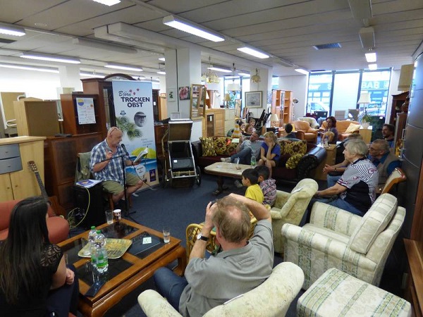 Die Tour startete musikalisch: Am Treffpunkt auf dem Alice-Salomon-Platz spielte César B. Posaune, dann ging es los zur nächsten Station. Am Mehrgenerationenhaus „Buntes Haus“ zeigten Kinder einen zum Musikinstrument umgebauten Einkaufswagen und erzeugten auf ihm allerhand Klänge. Dritte Station war das Sozialkaufkauf in der Janusz-Korczak-Straße, das preiswert Möbel zum Kauf anbietet. Hier las der Schriftsteller Björn Teetz Auszüge aus seinen Werken.