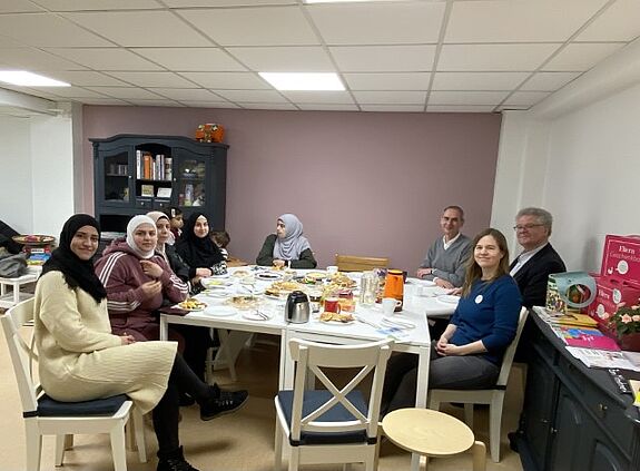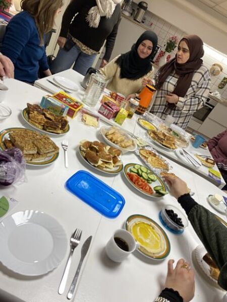 Bei einer kleinen Feier nahmen die Frauen im Familienzentrum Nahariyastraße stolz ihre Zertifizierungen entgegen. Die feierliche Übergabe fand direkt im Anschluss an die letzte Einheit des Grundkurses statt. Danach saßen die Absolventinnen mit ihren Dozierenden und dem QM-Team zusammen. Am reichlich gedeckten Tisch ließen sie sich das selbst zubereitete Essen schmecken.