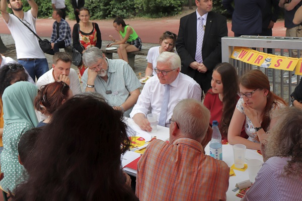 Bundespräsident Frank-Walter Steinmeier debattiert mit Anwohnern