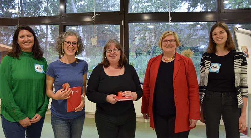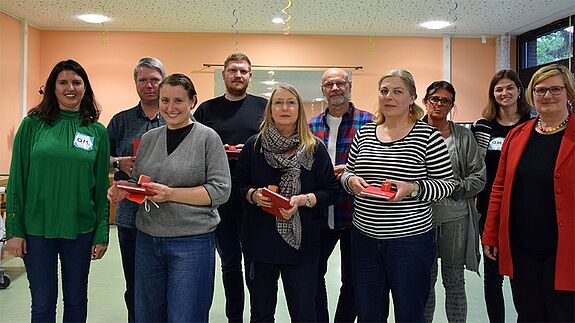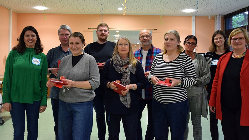 Anschließend stellte sich der neue Quartiersrat und die Aktionsfondsjury vor. Bezirksstadträtin Angelika Schöttler rief die Mitglieder auf die Bühne und bedankte sich bei allen für ihr ehrenamtliches Engagement mit einem Büchlein und Vergissmeinnicht-Samen. Weitere Interessierte, die mitmachen und mitgestalten wollen, seien stets willkommen.