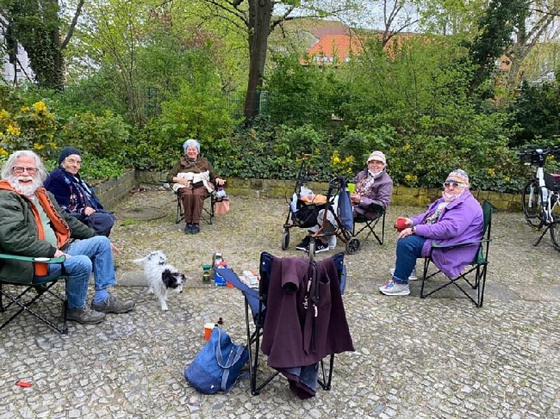 Mit ihrem Projekt „Wir in Moabit – Gemeinsam gesund Älterwerden“ ermöglichen sie aktuell gemeinsame, kostenlose, attraktive Unternehmungen in der Nachbarschaft mit Gleichgesinnten. Rund 20 Leute gehören derzeit zum aktiven Kern. Die Runde trifft sich in der Regel im Kleinen Tiergarten oder neben oder gegenüber vom Gebäude der Verwaltungsakademie an der Turmstraße, denn „dort ist es fast wie auf einem Dorfplatz“. Dazu werden immer Klappstühle, kleine Tische und in letzter Zeit auch das neue Kaffeerad mitgebracht. Auch beteiligen sich alle mit einer Kleinigkeit zum Essen oder Trinken.