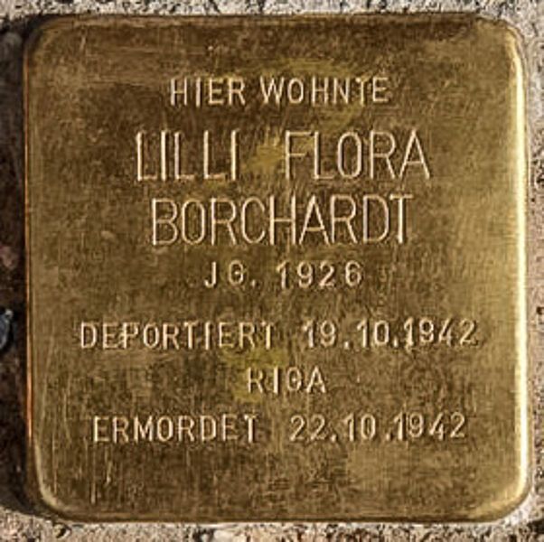 Die junge Lilli Flora Borchardt wohnte mit ihrer Familie während der Nazizeit gleich neben dem Park in der Pallasstraße. Die jüdische Familie wurde 1942 von den Nazis verschleppt und ermordet. Nur eine Schwester überlebte Dank eines Kindertransports nach England. An das Schicksal der Familie Borchardt erinnern Stolpersteine vor dem Haus Pallasstraße 12. So hob Bezirksstadträtin Christiane Heiß in ihrer Rede zur Umbenennungs-Feier hervor, dass es wichtig sei, sich an die ehemaligen Nachbarn zu erinnern. Zur Feier aus Israel angereist waren auch Verwandte der Familie Borchardt. Gila Rozenstein, die Tochter von Lillis überlebender Schwester, hielt eine Rede.