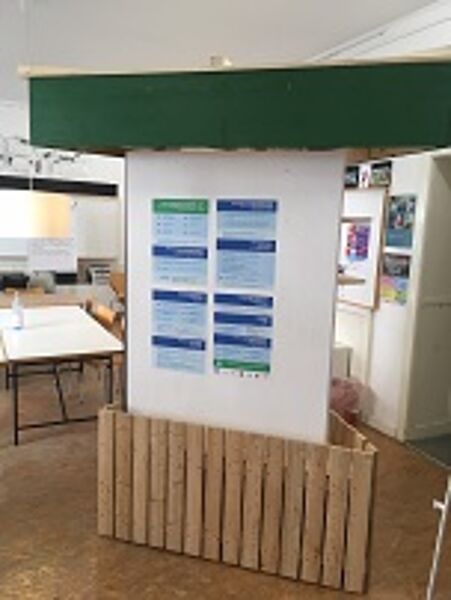 Jede Seite der Säule hat ihre eigene Funktion. Auf der ersten Seite werden Informationen zum Corona-Virus bereitgestellt, auf der zweiten Seite, die einer Tafel gleicht, können kleinen Nachrichten geschrieben werden und die dritte Seite ähnelt einem Gabenzaun: Jeder der mag, kann hier in Fächern oder an Haken Sachspenden für die Nachbarschaft hinterlassen.