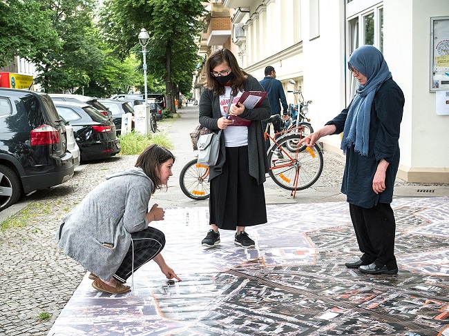 Das Ehepaar Martin und Ewelina Barthel betreuen das Nachbarschaftsprojekt. Mit einer überdimensionalen Stadtkarte gewappnet kommen sie mit vielen Bewohnerinnen und Bewohner ins Gespräch und konnten dabei schon die Top 6 Lieblingsorte in der Nachbarschaft herausfinden.