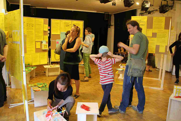 Eine Ausstellung, die zeitgleich gezeigt wurde, fasste die Ergebnisse von Befragungen zusammen, an denen Anwohnerinnen und Anwohner zu einem früheren Zeitpunkt teilgenommen hatten. In anschaulichen Grafiken wurden die Antworten auf Fragen dargestellt. Beispielsweise wurde gefragt „Wie bekommst du mit, was im Kiez passiert?“ und „Welche Angebote nutzt du im Kiez?“.
