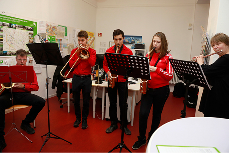 Eröffnet wurde die Ausstellung mit Jazz-Musik, Theateraufführungen und Fragenrunden. André Schneider, Philosophie-Lehrer an der Max-Beckmann-Oberschule, freute sich über die Leidenschaft der Teilnehmenden: „Wenn sich die Schülerinnen und Schüler, mit dem philosophischen Fachwissen im Unterricht ausgestattet, in den Bereich der angewandten Philosophie begeben, um Menschen aus dem Kiez zu ethischen Fragestellungen zu befragen, bekommt ihr theoretisches Wissen offensichtlich einen ganz neuen Stellenwert.“ Darüber hinaus beobachtete er einen wachsenden Enthusiasmus der Jugendlichen während des Projektverlaufs und betonte, dass es bei dem Projekt nicht um Schulnoten ginge, sondern um den Menschen.