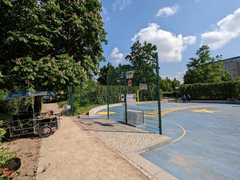 Veranstaltungsort war der vor einem Jahr eröffnete Kiezkreisel. Gefördert wurde der Aufbau des Kiezkreisels aus Mitteln des Programms „Sozialer Zusammenhalt“ und von der STADT UND LAND Wohnbauten-Gesellschaft. Auf dem Gebiet eines in die Jahre gekommenen Bolzplatzes ist dadurch ein Sport- und Kulturplatz für den Kiez entstanden, an dem Menschen verschiedenen Alters aus der Nachbarschaft gemeinsam Sport treiben oder Feste feiern können.