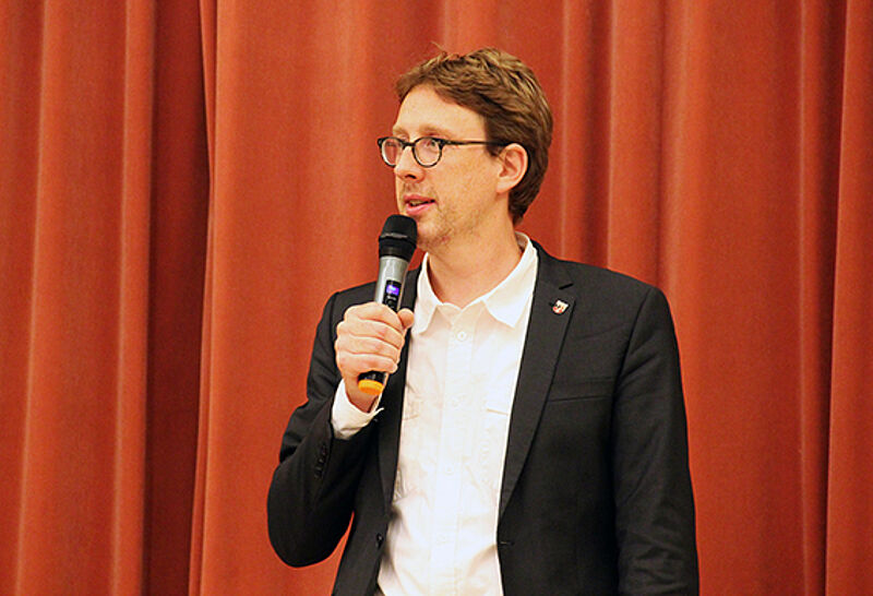 Bezirksstadtrat Jochen Biedermann sprach Dank und Anerkennung aus. Foto: Kerstin Heinze  / QM Sonnenallee / High-Deck-Siedlung