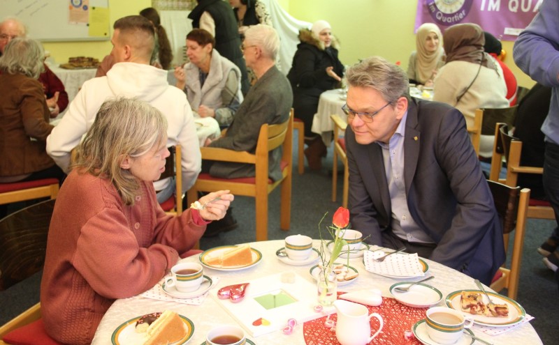 Nach der offiziellen Begrüßung im Gemeindesaal hielten Bezirksbürgermeister Jörn Oltmann und Bezirksstadträtin Eva Majewski kurze Lobreden über die wichtige Rolle des Ehrenamtes im Quartier. Sie betonten dabei die Bedeutung von Zusammenhalt in herausfordernden Zeiten.