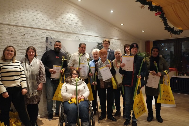 Am regnerisch grauen Nachmittag des 7. Dezember 2022 sorgte der Ehrenamtsempfang im Nachbarschaftstreff „mittendrin“ für sonnige Stimmung. Zahlreiche Engagierte, die sich im Jahr 2022 unentgeltlich für ein gutes Miteinander im Quartier eingesetzt haben, nahmen daran teil.