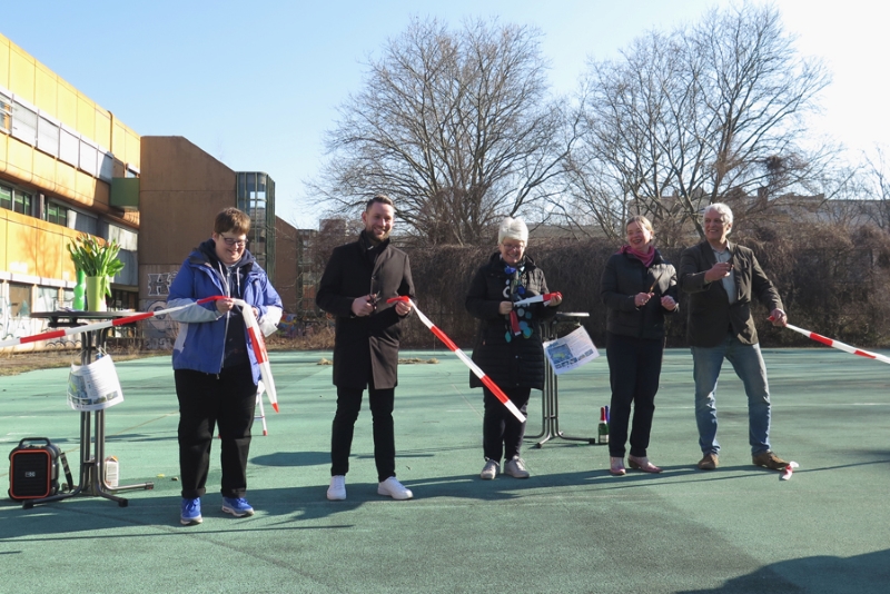 Zu verdanken ist die Wiederbelebung dem Caiju e.V., der das überzeugende Nutzungskonzept ausgearbeitet hat. Am 14. März 2022 unterzeichneten der Geschäftsführer des Caiju e.V., Per Traasdahl, und die Bezirksstadträtin für Schule, Sport, Kultur und Weiterbildung, Stefanie Remlinger, den Vertrag für die Zwischennutzung. Danach zerschnitten sie mit Quartiersratssprecherin Susanne Bürger, Jugendstadtrat Christoph Keller und Quartiersmanagerin Katja Niggemeier vom QM Brunnenstraße feierlich das Eröffnungsband.