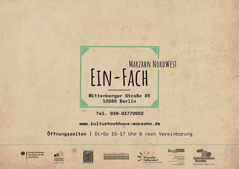 In unserem "Ein-Fach-Laden" stellen kreative MarzahnerInnen ihre kunsthandwerklichen und handgemachten Werke aus und bieten zudem unterschiedliche Workshops zum Erlernen der Techniken an.