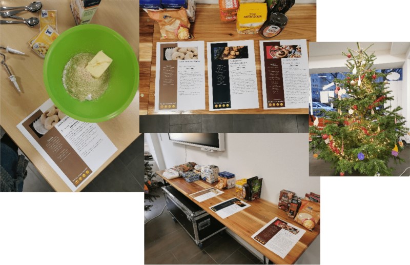 Zum Jahresende bot das Team für alle Kinder und Familien eine offene Plätzchen-backen-Runde an. Gemeinsam backten die Teilnehmenden klassische Vanillekipferl mit Mandeln, Cranberry Rollkekse und weihnachtliche Haferflockenplätzchen. Um auch den Hintergrund der gesunden Ernährung nicht zu vergessen, wurden die Rezepte etwas abgewandelt. So wurden beispielsweise höherwertiges Mehl oder Nüsse verwendet und der Zuckeranteil reduziert. Nach dem Backen konnten sich die Kinder und Familien eine kleine Naschtüte mitnehmen, in der die selbst gebackenen Plätzchen und auch Walnüsse enthalten waren.