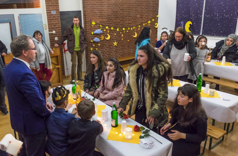 Bei der feierlichen Eröffnung des Elterncafés sorgten die Kinder der Grundschule für ein Begleitprogramm. Der Bezirksbürgermeister Helmut Kleebank, der Schulleiter Sven Olsok-Becker und Karl-Heinz Fricke vom Quartiersmanagement im Falkenhagener Feld West hielten Grußworte. Als Vorsitzende des Fördervereins der Grundschule betonte Bettina van Loosen die Wichtigkeit des Projektes. Sie selbst hat sich mit viel Herzblut für das neue Elterncafé engagiert.