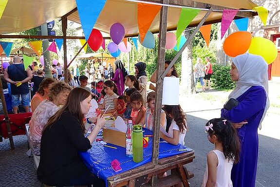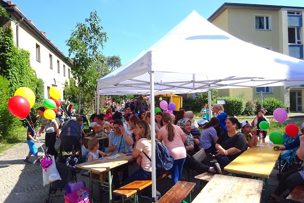 Das Familienfest in der Einhornstraße wurde von Tanja Molkenthin, der Leiterin des Clubhauses, im Namen des Clubhaus-Teams, der Koffer Akademie sowie der Schule und Schulstation, der Kita und des Familienzentrums Debora eröffnet. Es erschienen zahlreiche Gäste, welche die angebotenen Aktionen mit Freude annahmen. An den vielen Spielständen bastelten Kinder Blumenkränze, zielten mit Wassersprühern auf Plastikkugeln oder fabrizierten Riesenseifenblasen. Im Garten und Innenbereich des Clubhauses genossen Besucherinnen und Besucher zudem frisch gegrilltes Fleisch oder bedienten sich am Buffet mit zahlreichen süßen Köstlichkeiten.