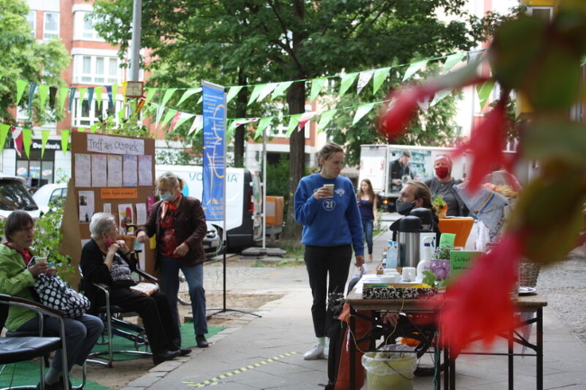 Mit einer Gehweg-Aktion vor dem Seniorentreff, einer kleinen Straßengalerie sowie einem Fenster- und Balkonfest war für Klein und Groß Unterhaltung garantiert. Die Vorbereitungen für das Fest der etwas anderen Art liefen bereits Wochen im Voraus. Unterstützung erhielten die Mitarbeitenden des QM Moabit West und des Moabiter Ratschlag e.V. durch das Projekt "Zusammen leben, zusammen älter werden".