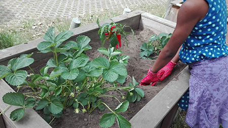 So fand zum Beispiel am 15. Mai 2018 eine Pflanzaktion mit Mädchen und dem Team aus dem Mädchen- und Frauentreff statt. Dabei wurden zunächst alle gekauften Pflanzen ausgestellt und die Mädchen überlegten, welche Arten sie schon kennen und welche Gemüsesorten sie mögen. Danach wurden gemeinsam die Pflanzen ausgesucht, die sich am besten für die Gegebenheiten vor Ort eignen. Anschließend wurde gepflanzt.