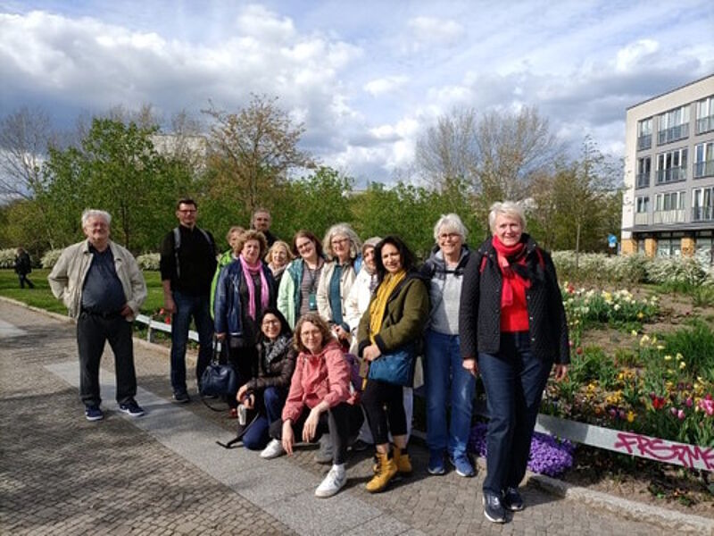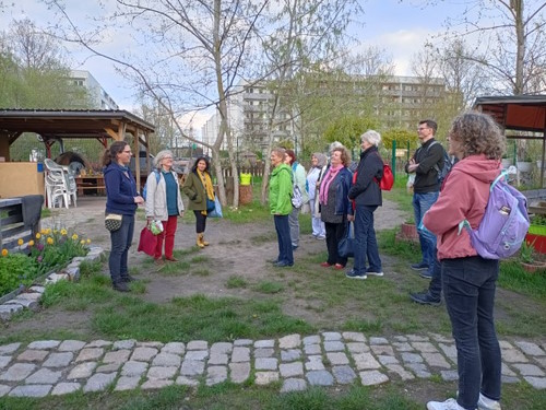 Impulse für die weitere Kiezentwicklung bekommen: Das stand am 24. April 2023 im Mittelpunkt, als Quartiersrätinnen und -räte sowie das Quartiersmanagement (QM)-Team aus der Gropiusstadt Nord das Quartier an der Hellersdorfer Promenade besuchten.