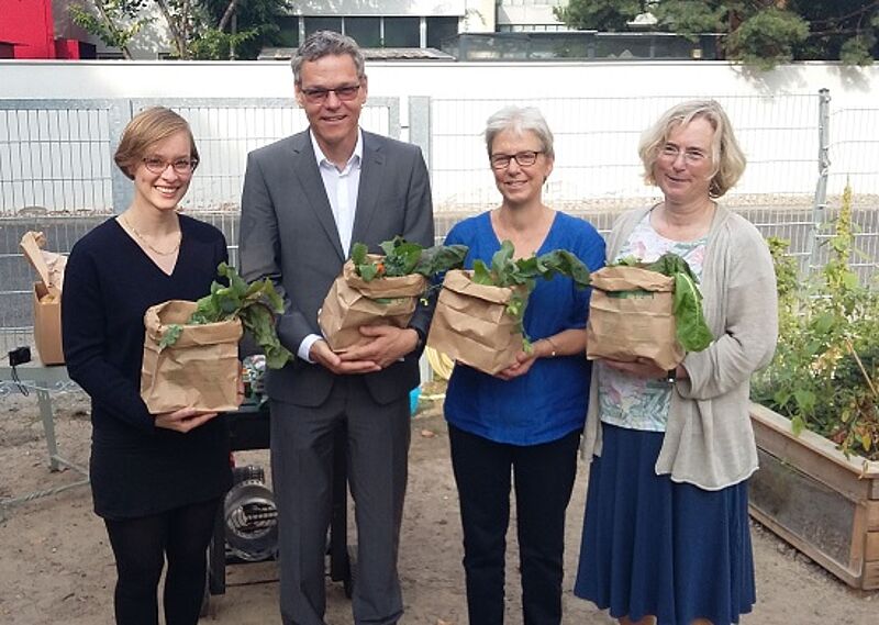 Besucher und Besucherinnen des Festes konnten die Gartengruppe kennenlernen und sich den Garten anschauen. Auch für die kleinen Gäste gab etwas zu entdecken: ein Sinnesspiel zeigte die vielseitigen Facetten des Gartens. Außerdem ernteten die Kinder Kartoffeln und gestalteten das Schild der Gartenpforte.