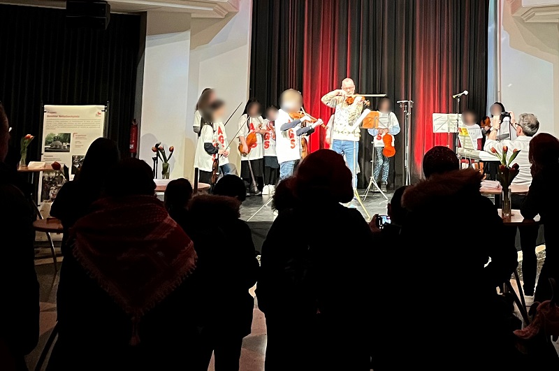 Den Auftakt machte die Musik-AG der Albert-Gutzmann-Schule mit einer Darbietung der Geigen-Gruppe unter Leitung von Musiklehrer Ulrich Weber. Sie spielten klassische Stücke sowie bekannte Kinderlieder. Nach einer kurzen Begrüßung durch das Quartiersmanagement und Bezirksstadtrat Ephraim Gothe folgten weitere Stücke auf der Flöte. Das Publikum war begeistert vom Können der jungen Musikerinnen und Musiker aus ihrem Quartier. Danach wurde es dynamisch: Die Kinder vom Zirkus Internationale führten einen beeindruckenden Stockkampf-Tanz auf.