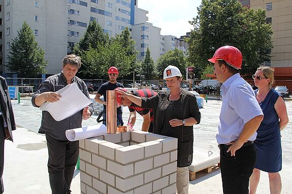 Olof-Palme-Zentrum Richtfest mit Staatssekretär Lütke-Daldrup und Bezirksstadträtin Sabine Smentek. Foto: Dominique Hensel