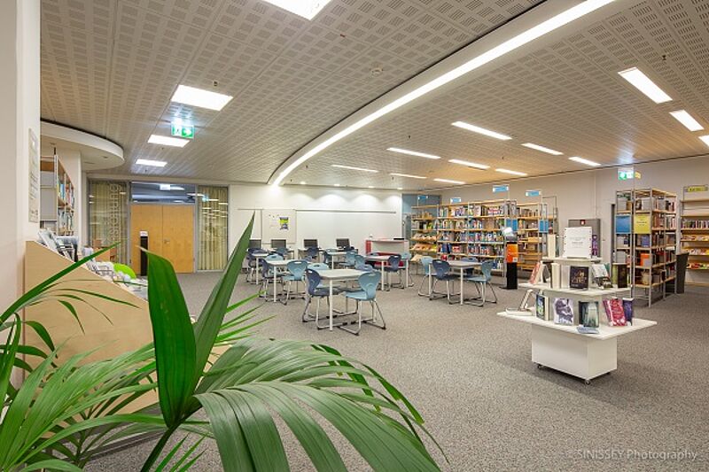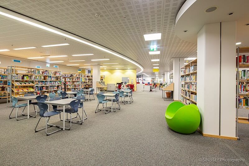 Blick in die neue Jugendbibliothek. Bild: SINISSEY Photography
