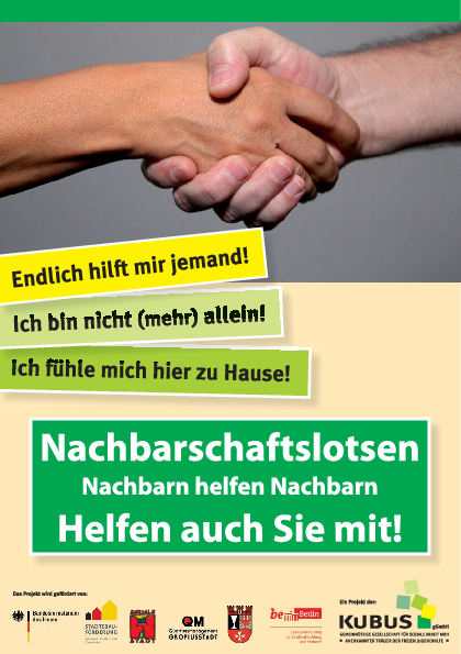 Plakat: Nachbarschaftslotsen gesucht! Bild: QM Gropiusstadt