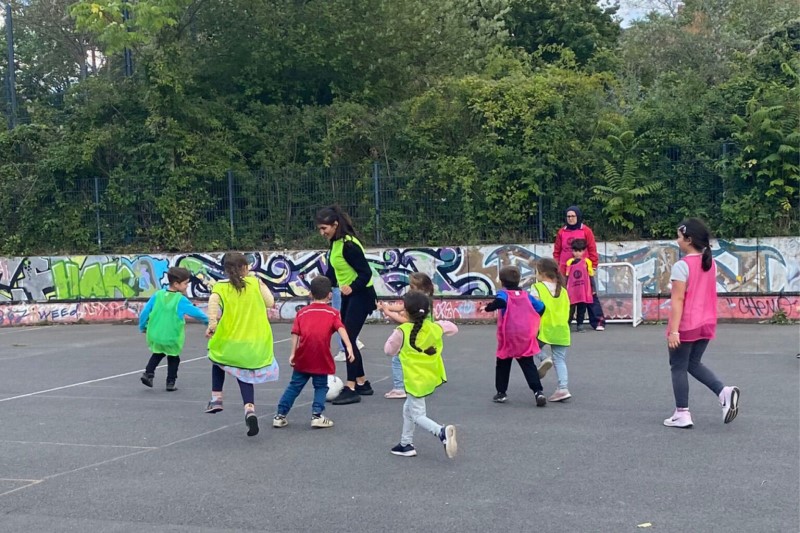 Wie viele Tore es am Ende waren, wusste beim ersten Fußballturnier der Kita Paradiesvögel keiner mehr. Aber darauf kam es bei dem Turnier am 16. September 2022 auch nicht an. Rund 30 Kinder und ihre Eltern waren zum Bolzplatz im QM-Gebiet Germaniagarten gekommen. Schon im Vorfeld hatten viele geholfen: Ein Vater besorgte zum Beispiel die mobilen Tore, andere Eltern säuberten vor dem Turnier das Spielfeld mit den Kindern.