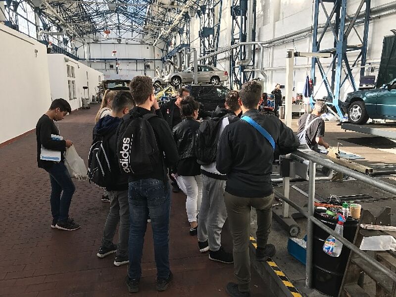 Die Schulen sehen den vielfältigen und intensiven Kontakt mit den Betrieben als große Bereicherung für die Berufsorientierung. Hier: Zu Besuch in der Kfz-Werkstatt. (Bild: Katja Gartz)