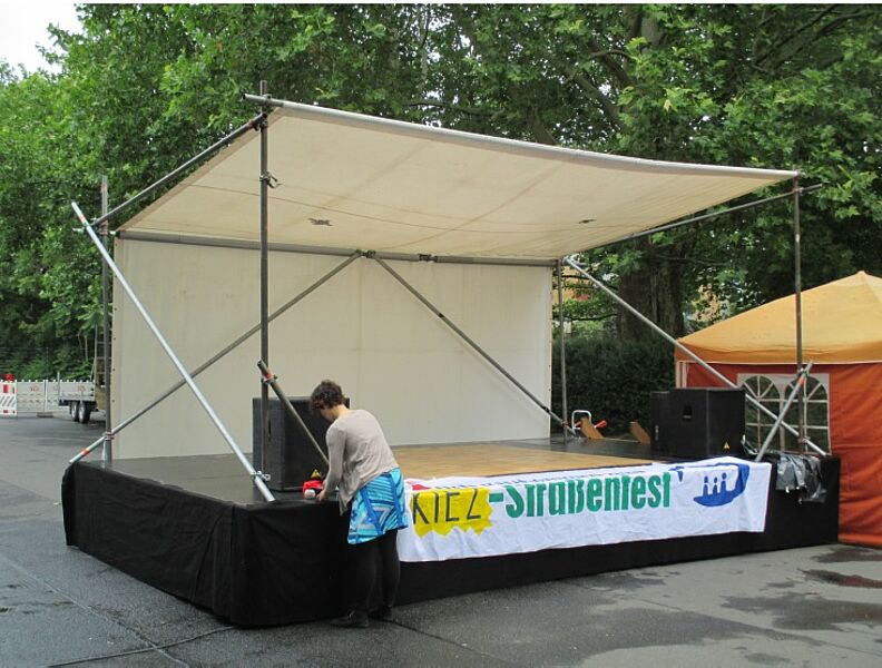 Die Bühne wurde von Jugendlichen des Neuköllner Richardkiezes im Rahmen eines Aktivierungsprojektes geplant und gebaut. Zum Kiez-Sommerfest im Juli 2009 wurde die Bühne dann zum ersten Mal eingesetzt. Seither hat sie sich berlinweit auf vielen Platz- und Straßenfesten bewährt. 2014 wurde die Bühne generalüberholt. Das Angebot der Neuköllner Juniorfirma: Fünf Jugendliche übernehmen den kompletten Bühnenservice. Sie liefern die Bühne an, bauen sie auf und später wieder ab.