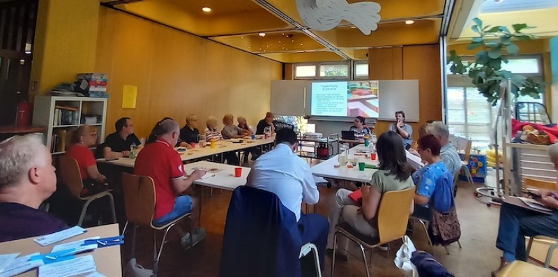 Mitglieder des Quartiersrats und der Aktionsfondsjury diskutieren über neue Projekte und Aktionen im QM-Gebiet Heerstraße Nord. (Bild: QM Heerstraße Nord)