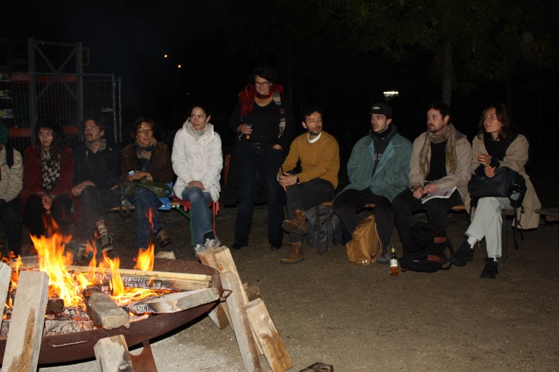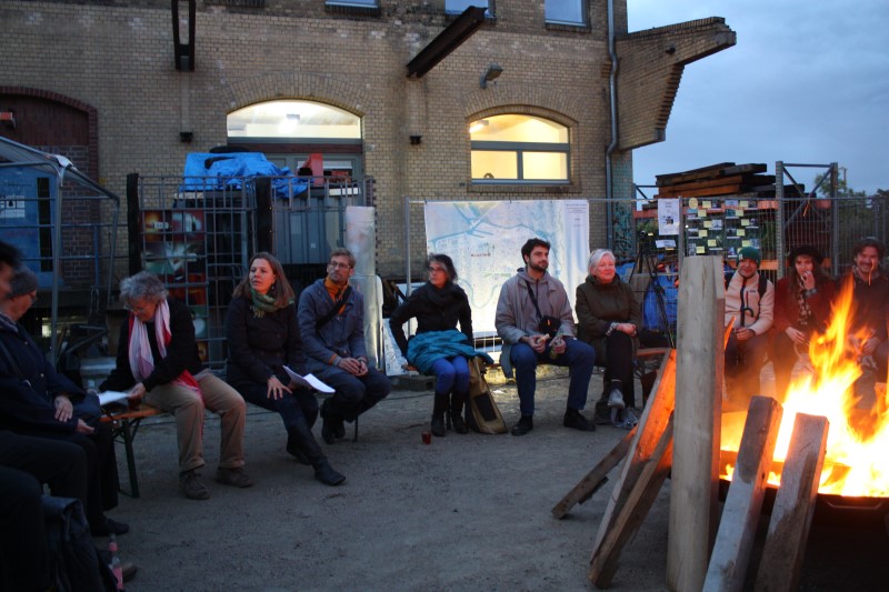 Es herrschte Lagerfeueratmosphäre vor dem Gebäude des ZK/U, das derzeit über das Programm Sozialer Zusammenhalt energetisch saniert und erweitert wird. Etwa 50 Gäste hatten sich rund um eine große Feuerschale versammelt. Beim Knistern der Flammen sowie Getränken und belegten Broten tauschten sich die Teilnehmenden angeregt über die Kunst- und Kulturszene in Moabit aus.