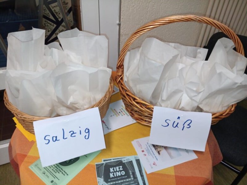 Beim Kiezkino im Haus Bottrop gab es Popcorn in süßer und salziger Variante – ein Genuss für alle Besucherinnen und Besucher. (Bild: Julia Six)