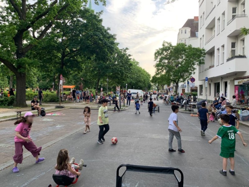 Das QM-Projekt „Temporäre Spielstraße mit nachbarschaftlicher Begegnung und kulturellem Austausch“ fördert seit dem Jahr 2022 unter der Leitung des Trägers stadt.menschen.berlin GmbH Begegnungen und Austausch auf Flächen, die normalerweise weniger der persönlichen Begegnung dienen. Im Rahmen des Projekts werden Straßen zeitweise für den Autoverkehr gesperrt und in lebendige Räume für kleine und große Anwohnende verwandelt.