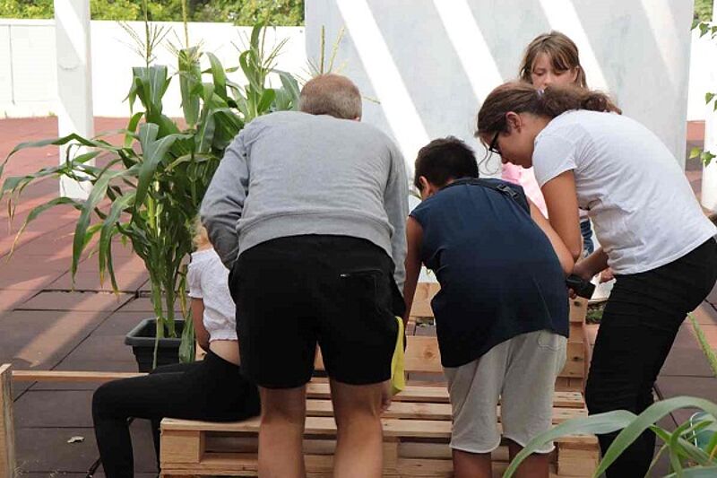 Projekt „Kommunikationsgarten“: Auf dem Dach der Jugendfreizeitstätte in der Hussitenstraße 62 gestalten Kinder und Jugendliche ihre eigene Wohlfühloase.