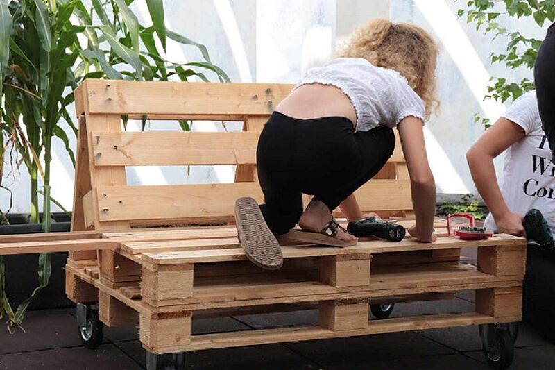Ermöglicht wird die Verschönerungsaktion vor allem durch tatkräftigen Einsatz der Kinder und Jugendlichen. In Workshops sammelten sie ihre Wünsche für die Neugestaltung und entwarfen unter Anleitung von Tischler Matthias Einhoff Möbel aus Holzpaletten, die sie nun selbst zusammenbauen. Die Initiatorin der Workshops, Simone Häckel, möchte mit dem Programm die Neugier der Kinder und Jugendlichen für handwerkliche Arbeit wecken. Zudem wird die Identifikation mit dem Jugendzentrum gestärkt.