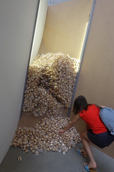 Im Kesselhaus der alten Kindl-Brauerei konnten viele Besucherinnen und Besucher ihr Glück kaum fassen. 10.000 Kekse mit verschiedenen Botschaften warteten nur darauf, geknackt und mitgenommen zu werden. Die Künstler Anne Brannys und Thilo Droste bestückten die Kekse mit 70 unterschiedlichen Botschaften. 20 davon wurden bei den Anwohnenden im Flughafenkiez gesammelt. Sie reichten von philosophischen Sprüchen bis hin zu konkreten Sehnsüchten.