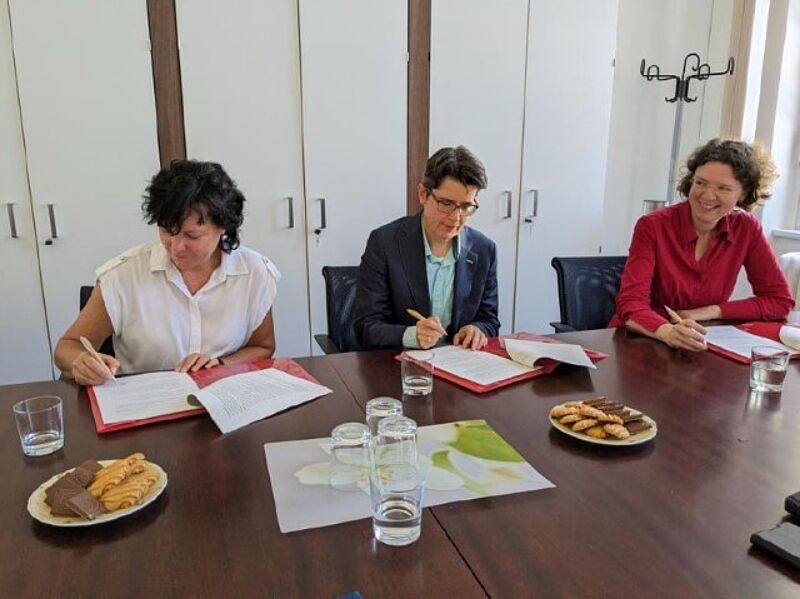 Dr. Sandra Obermeyer, Abteilungsleiterin Quartiersentwicklung der Senatsverwaltung für Stadtentwicklung, Bauen und Wohnen, Korinna Stephan, Bezirksstadträtin für Stadtentwicklung und Irina Herz, Prokuristin der landeseigenen Wohnungsbaugesellschaft GESOBAU AG, kamen am 22. September 2023 zusammen, um die gemeinsame Kooperationsvereinbarung zu unterschreiben. Mit dieser verpflichten sie sich, die Fördergelder aus dem Städtebauförderprogramm „Sozialer Zusammenhalt“ für das Märkische Viertel gemeinsam und zielgerichtet einzusetzen und dadurch die Wohn- und Lebenssituation der Menschen vor Ort zu verbessern.