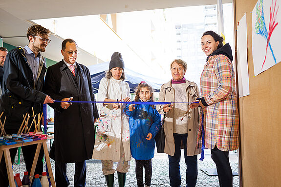 Ein Begegnungsort der besonderen Art wurde beim Kunst-Tag zwischen zwei Wohnhäusern im Wassertorkiez eingeweiht. Zwei Pinnwände, die von der Künstlerin und Quartiersrätin Lucia Peinado Metsch und der Regenbogenfabrik-Holzwerkstatt geschaffen wurden, dienen ab sofort als „Maldurchgang“. Zum Bemalen, als Ausstellungsort, Fotokulisse oder Arbeitsplatz im Freien: die Bewohnerinnen und Bewohner können sich ab sofort kreativ betätigen.