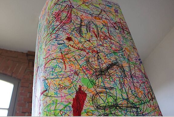 Auch die Ergebnisse aus dem Schreibworkshop „Erzähl was“ und der Grafikwerkstatt „REMIX“ sowie der „Werkstatt für Schulbuchumbau“ werden in der Remise ausgestellt.