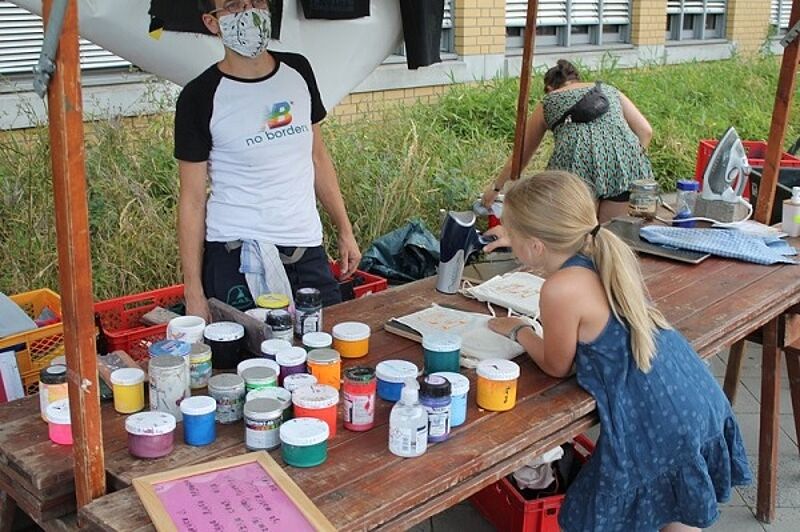 Gerade die kleinen Gäste konnten sich auf dem Festival kreativ ausleben. In vielseitigen Workshops wurden Linol- und Siebdrucke ausprobiert, kleine Musikinstrumente gebaut und Samenbomben zum Einpflanzen zusammengestellt. Für das Projekt „Hellersdorfer Gesichter“ porträtierte der Maler Jihad Issa Anwohnerinnen und Anwohner.