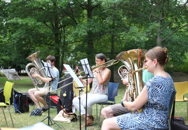 Das Berliner Concert Brass Orchester sorgte für ausgelassene Stimmung bei den Zuschauerinnen und Zuschauern. Bild: QM Weiße Siedlung Dammweg W+P GmbH u. H. Heiland