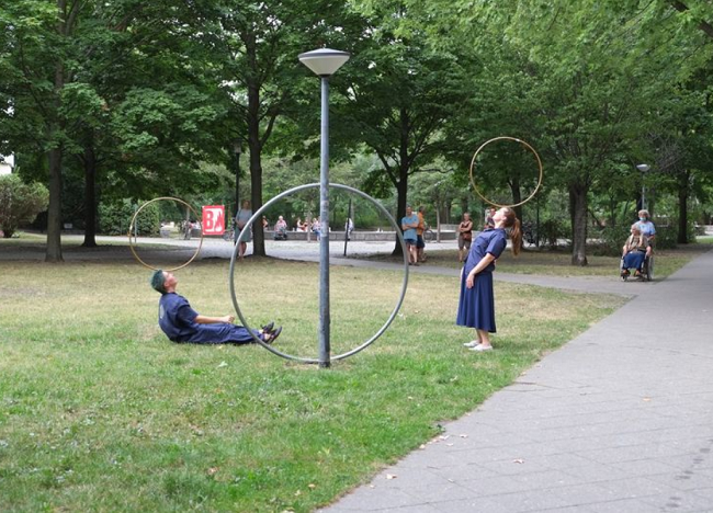 Milena Schulz und Kathrin Wagner präsentierten außergewöhnliche Kunststücke mit Hula-Hoops und dem Cyr-Wheel. Bild: QM Weiße Siedlung Dammweg W+P GmbH u. H. Heiland